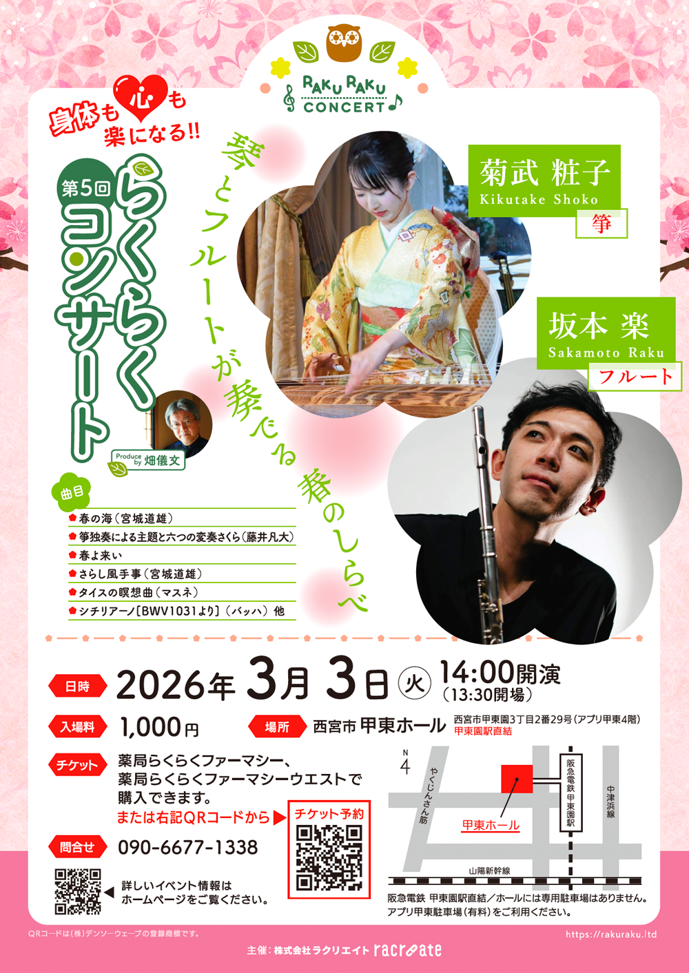 箏の菊武 粧子さん、フルートの坂本 楽さんをお呼びして、春のしらをお届けいたします。